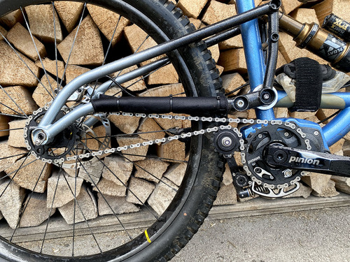 On entend souvent dire qu’il faut compter 1kg de plus pour une boite de vitesse par rapport à une transmission classique, mais en réalité il faut bien compter 1,5kg voir un peu plus sur un tout suspendu selon le système de tension qu’on installe.