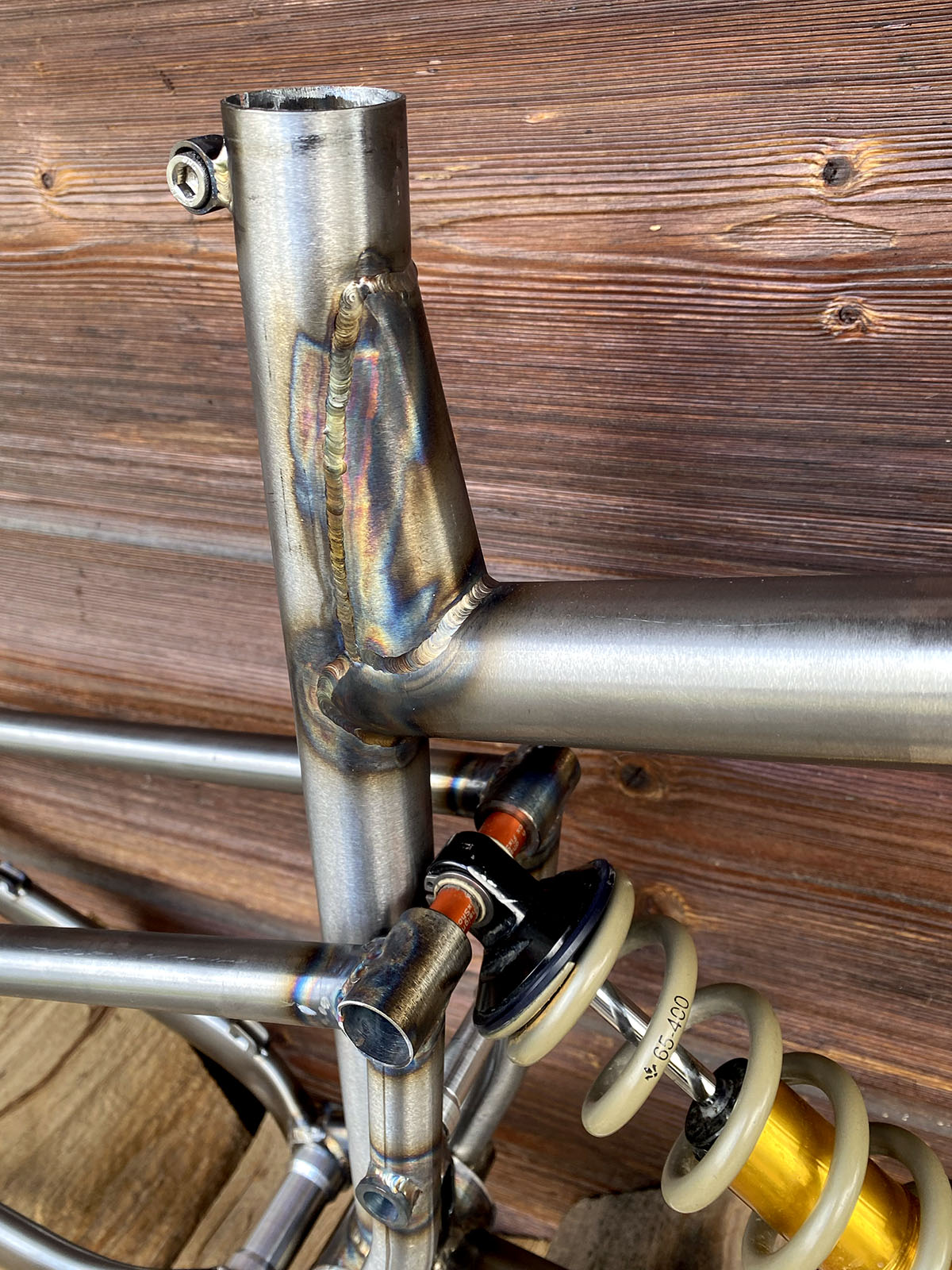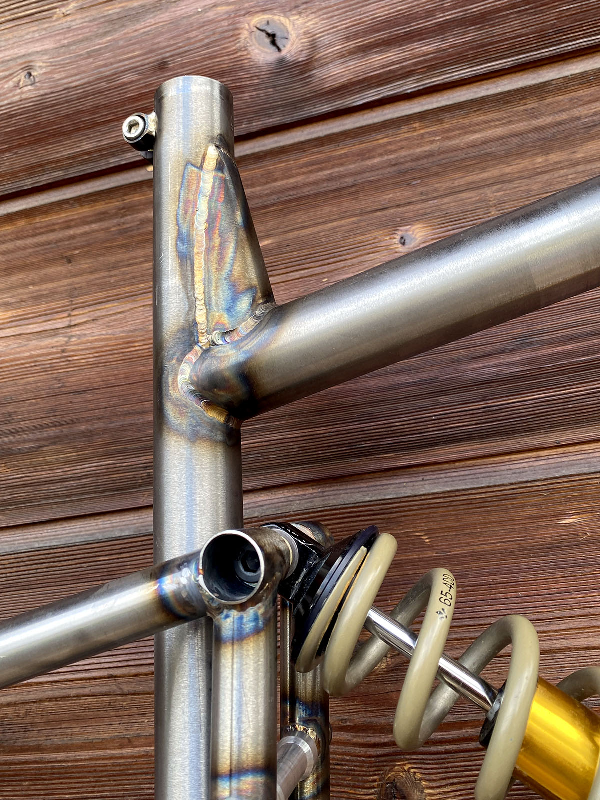 Le renfort qui rend ça possible est plutôt réussi mais je déconseille ce genre de construction (trop de soudures sur ce tube de selle, enfin à mon goût)