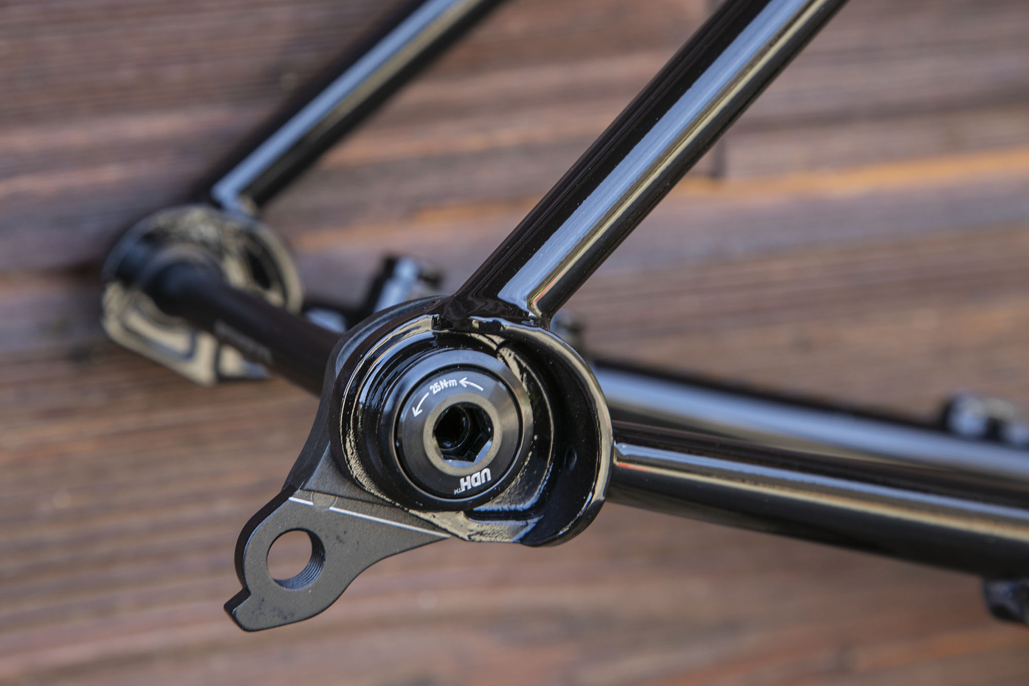 Tube de selle 27.2 - passages de gaines/durites intégrés dans le downtube. Frein ARR FM160 - boitier T47 68mm - Patte de dérailleur UDH