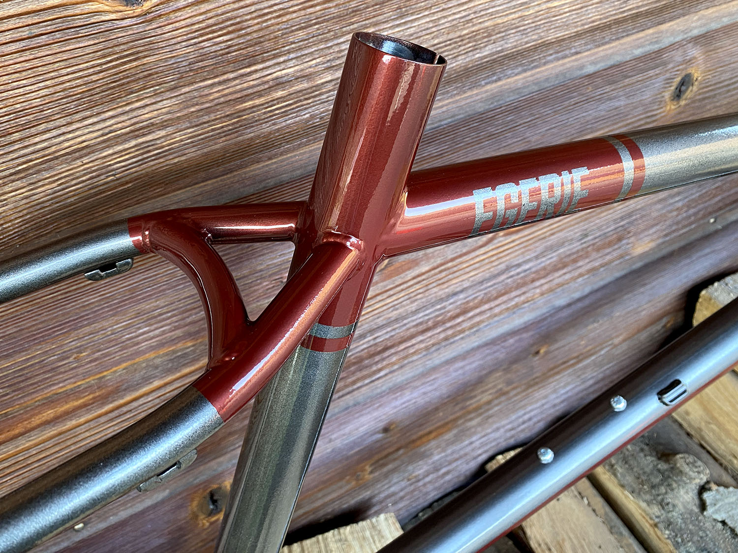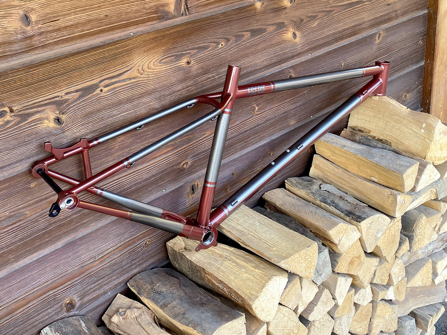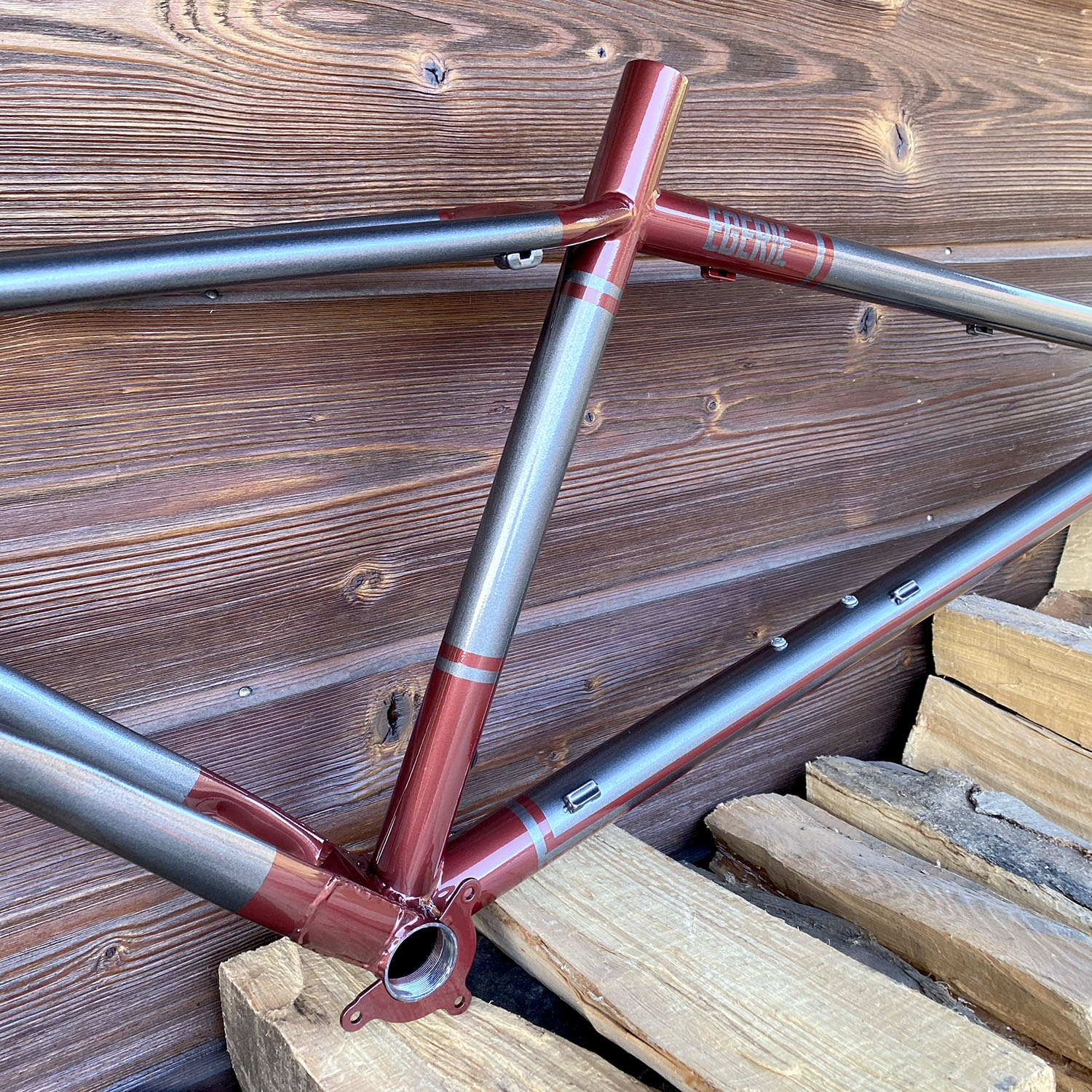 Cadre en tubes Reynolds 631 et Crmo simple épaisseur (downtube + haubans).