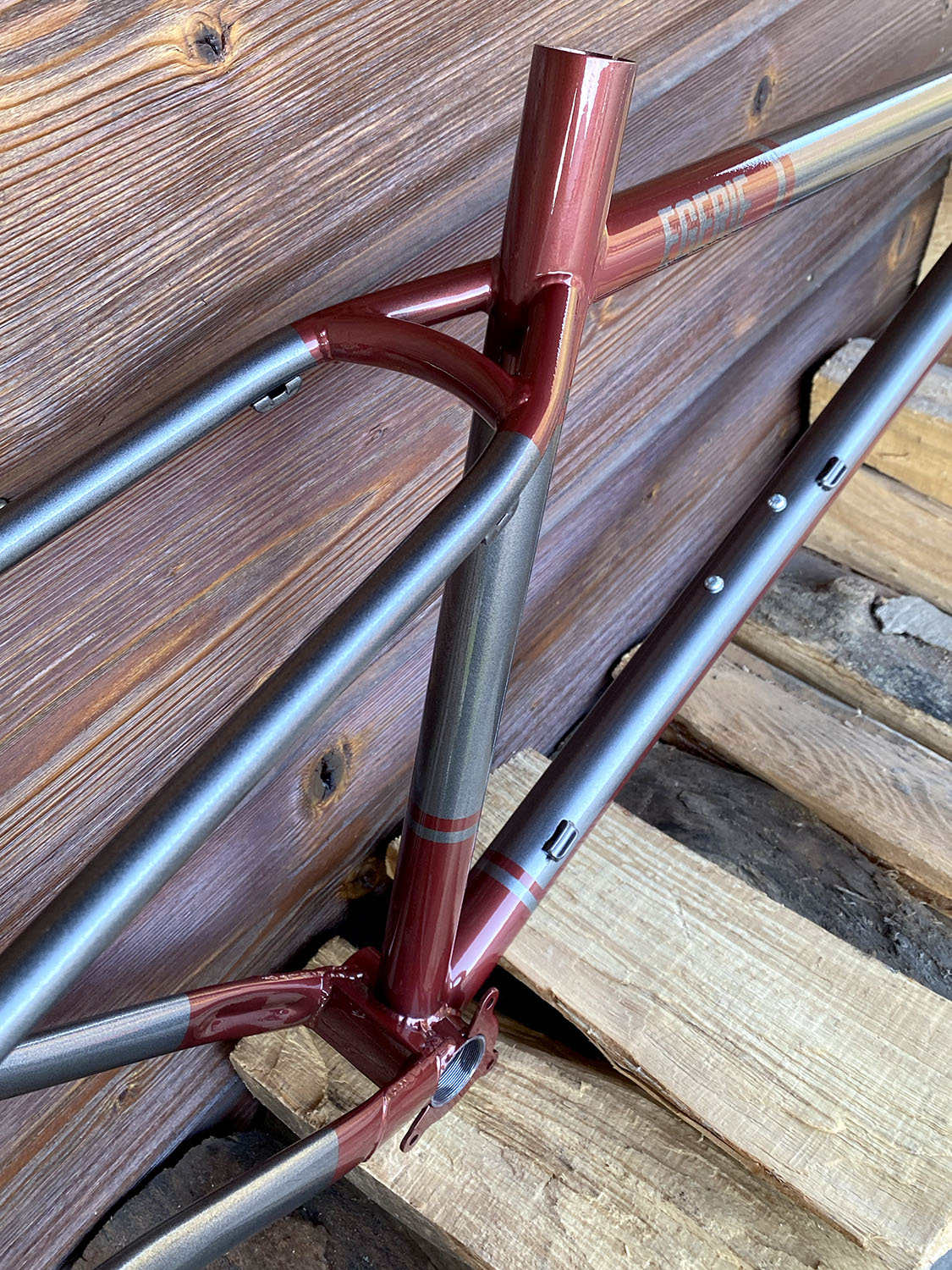 Peinture rouge ruby + gris métallisé.