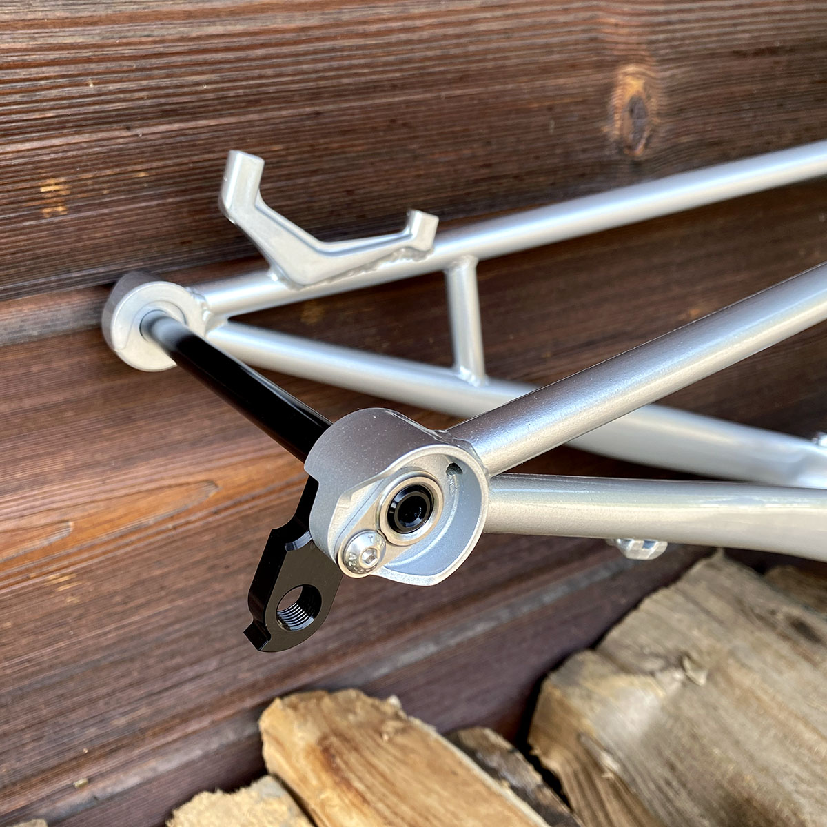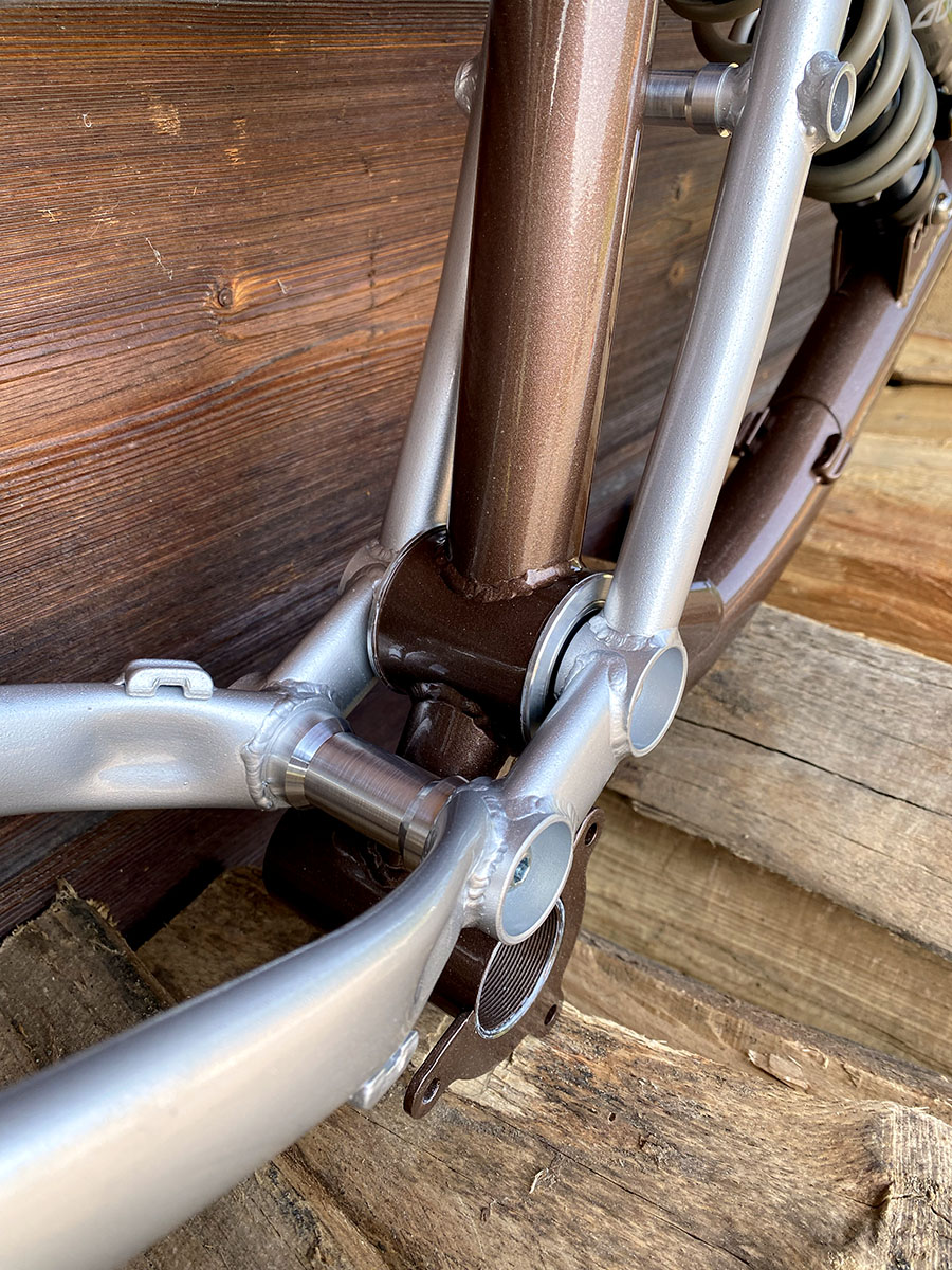 Point de pivot "classique", assez proche de la ligne de chaine afin d’avoir un anti squat intéressant pour le rendement.