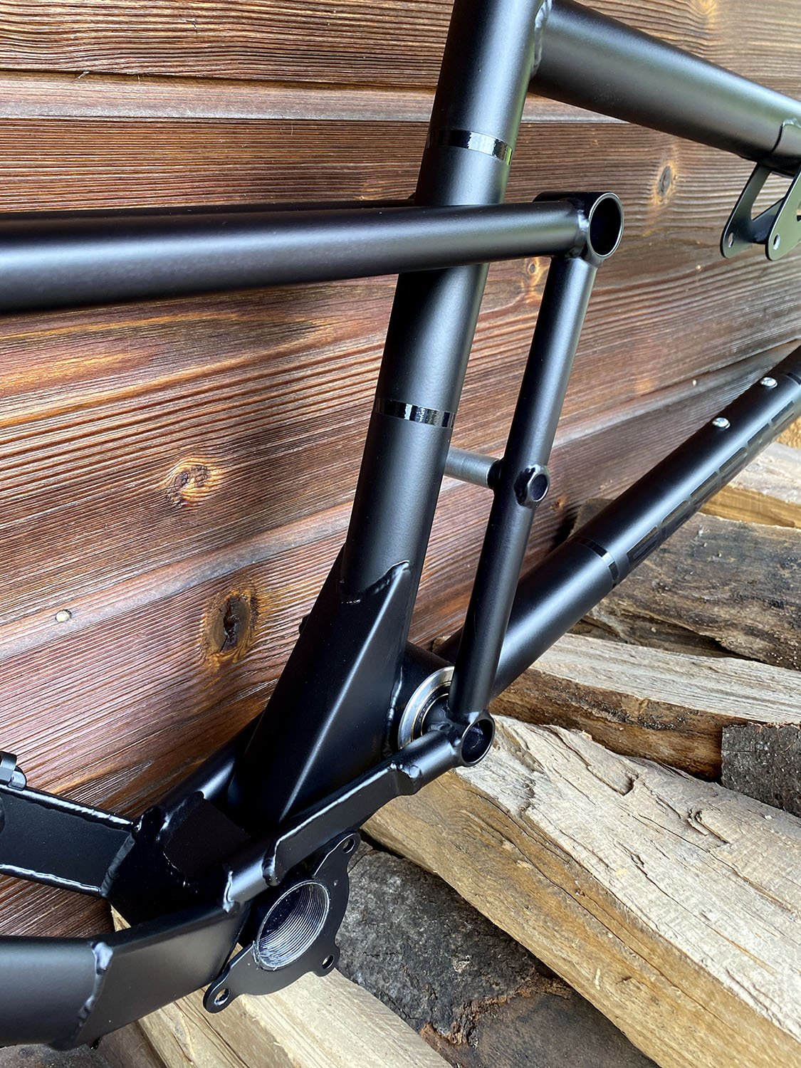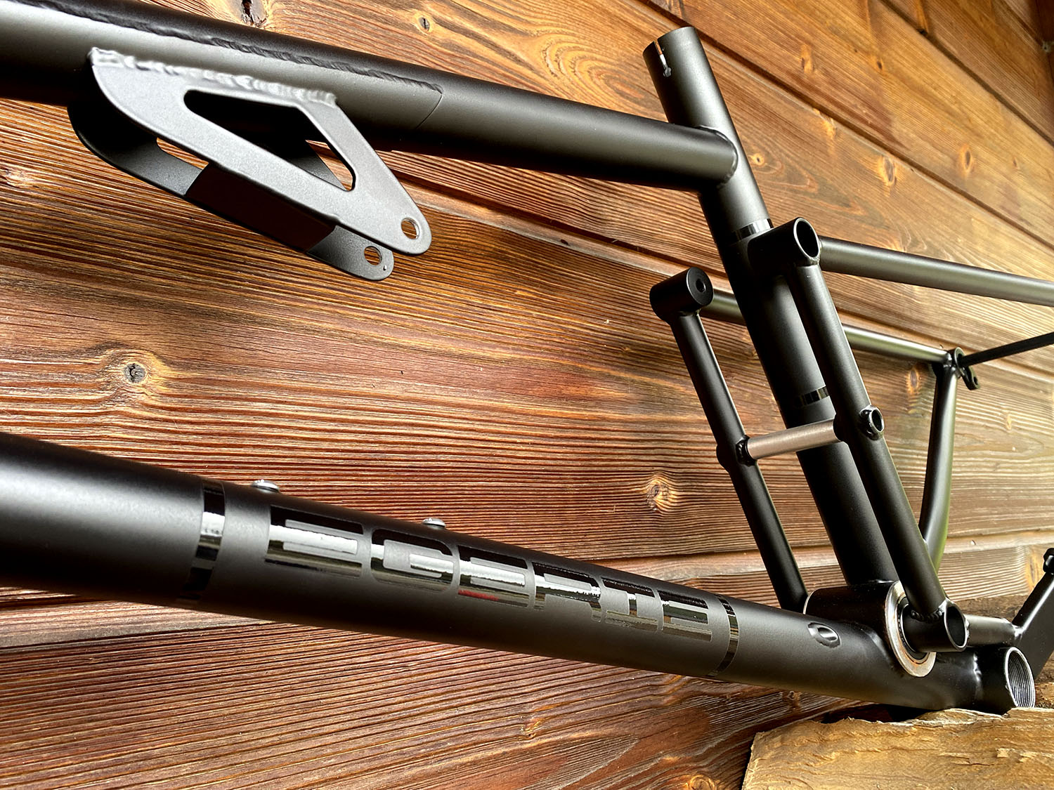 Cadre Enduro avec un mix de tubes Reynolds 631/853 et Columbus Zona.
