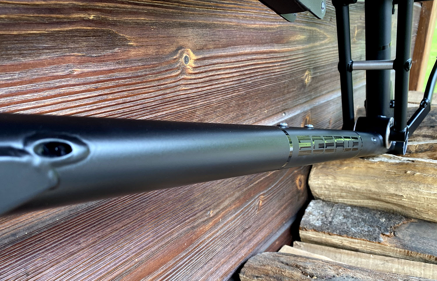Géométrie sur mesure avec un Reach de 505mm (pour rider de 1m90).