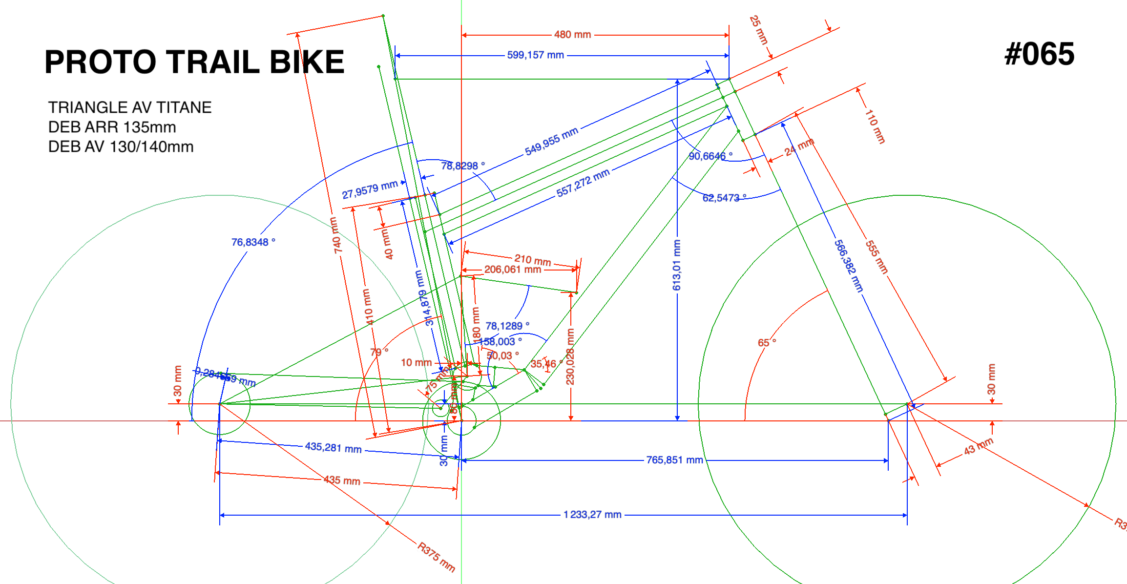 Suite au cadre réalisé pour Paul Aston et à ses discours sur les géométries longues qui seraient l’avenir etc. J’ai recyclé un vieux triangle arrière pour passer un de mes vélos (le trail Titane/acier) en bases de 480mm (le Reach est de 480mm sur ce cadre). Ainsi tester le concept que Paul et quelques autres défendent à savoir Reach long, bases longues, boitier haut.