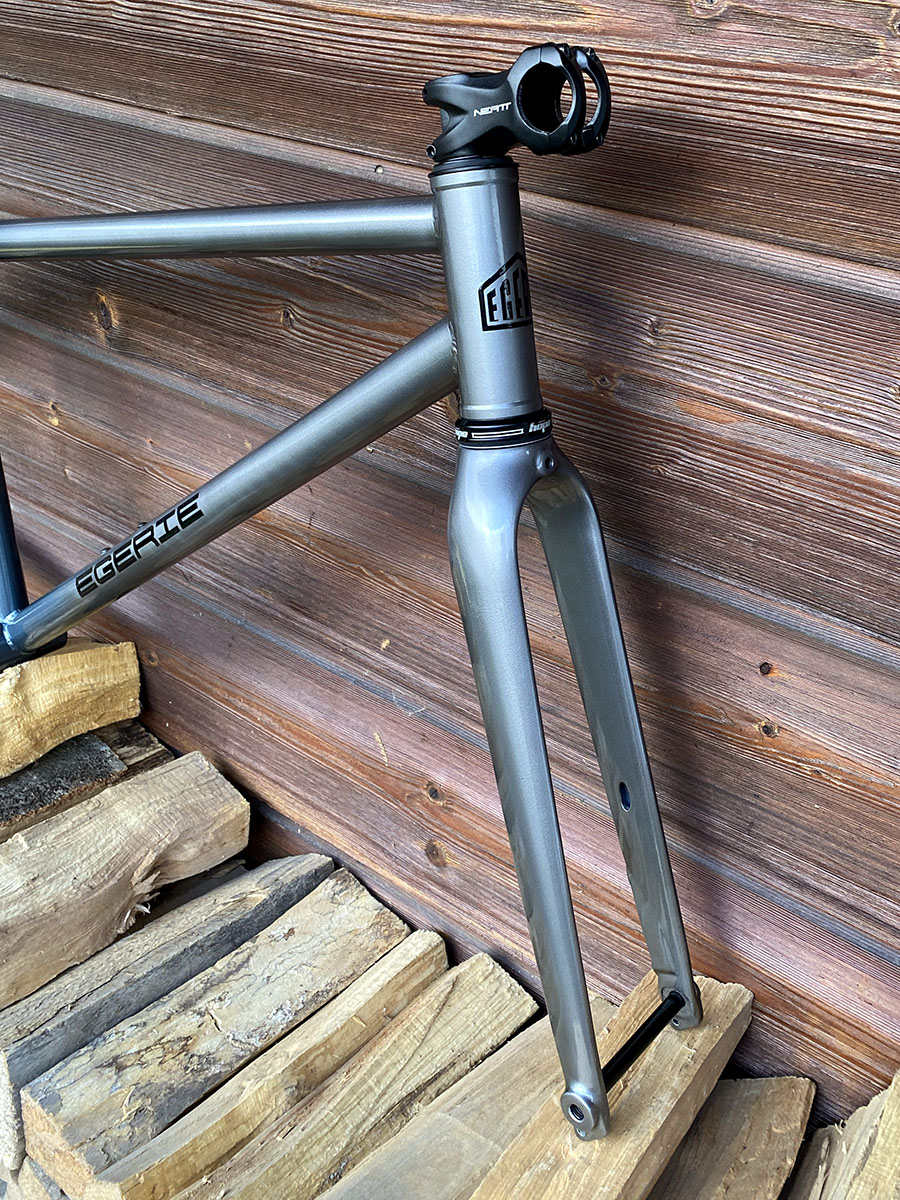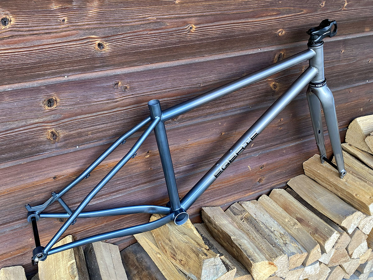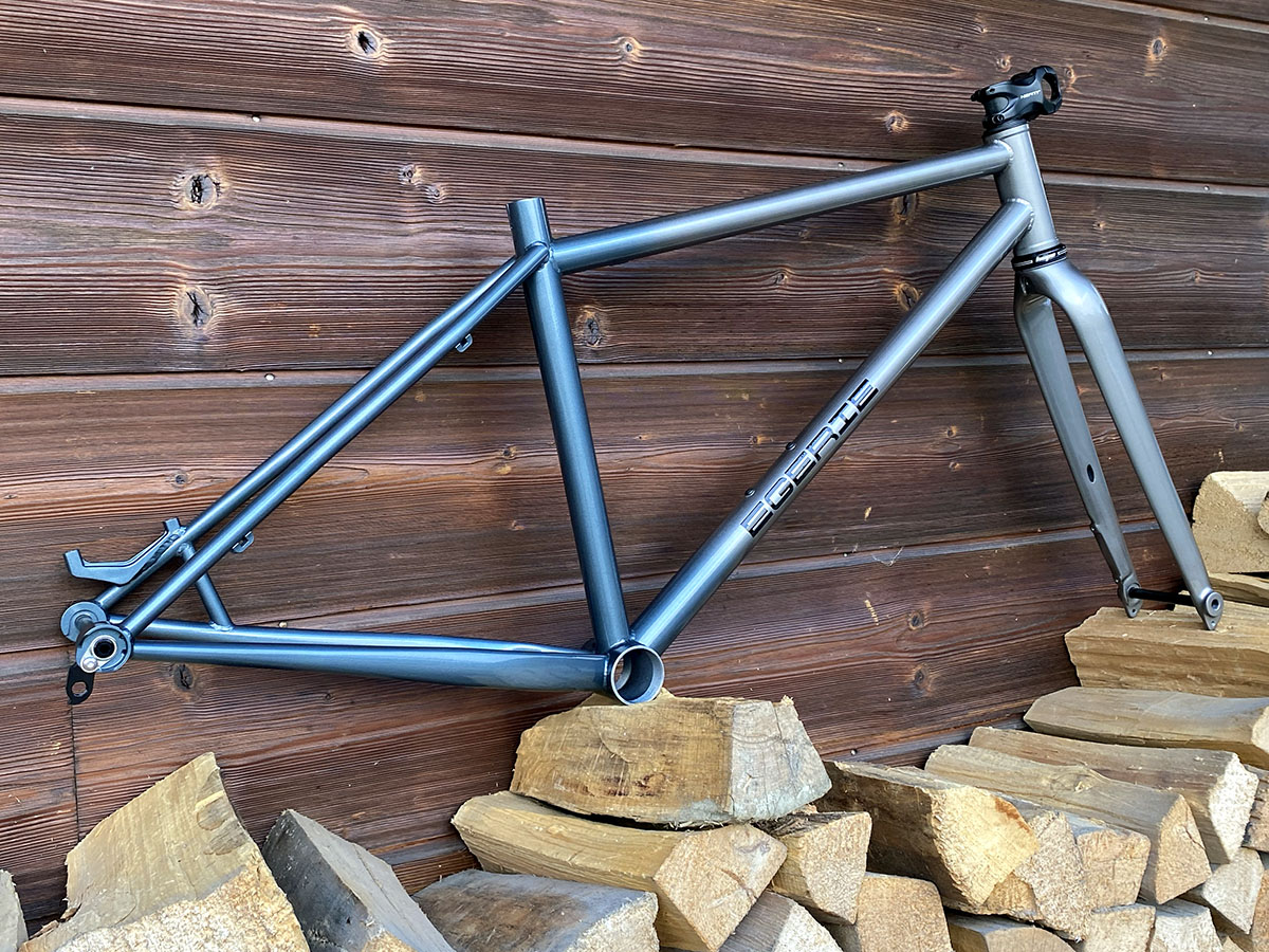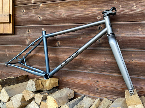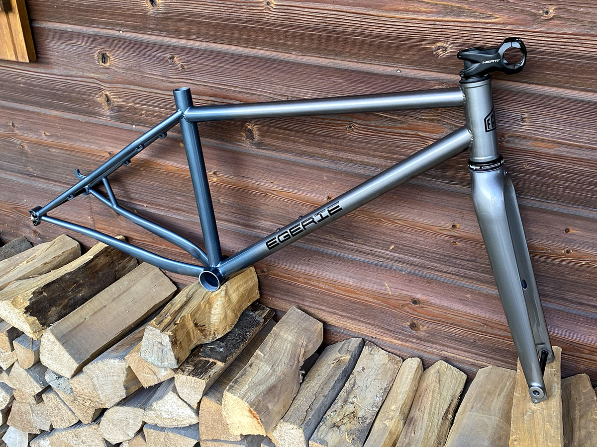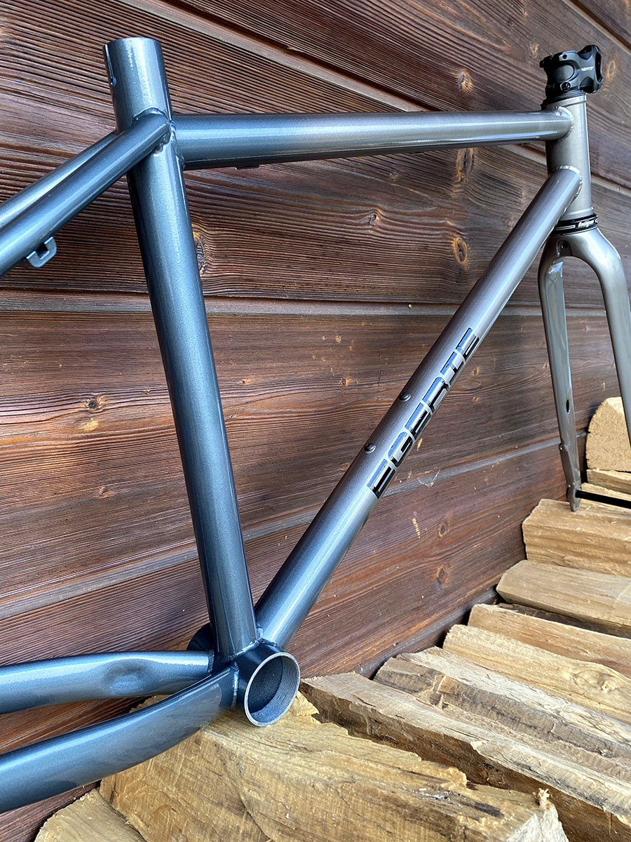 Cadre de gravel pour roues de 650B (27.5"), la géométrie est optimisée pour l’utilisation d’une potence de 50mm et un cintre de VTT.