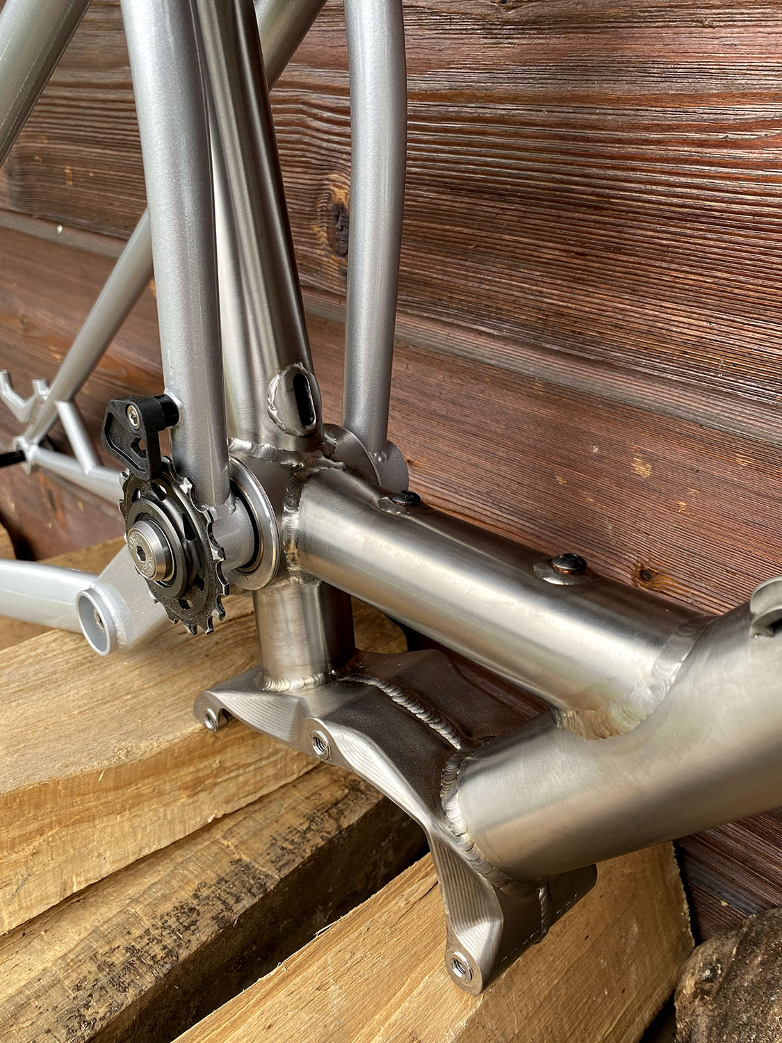 - Cadre VTT de Descente DH Titane/acier pour boite de vitesse fabriqué en France - Downhill frame