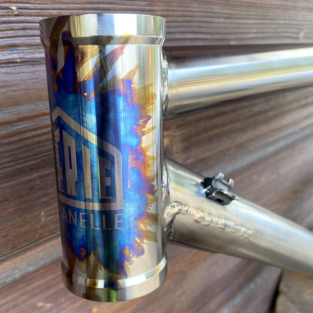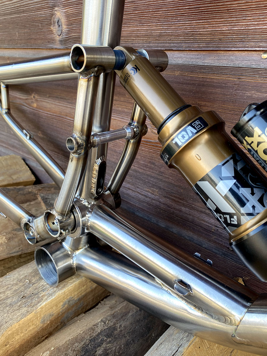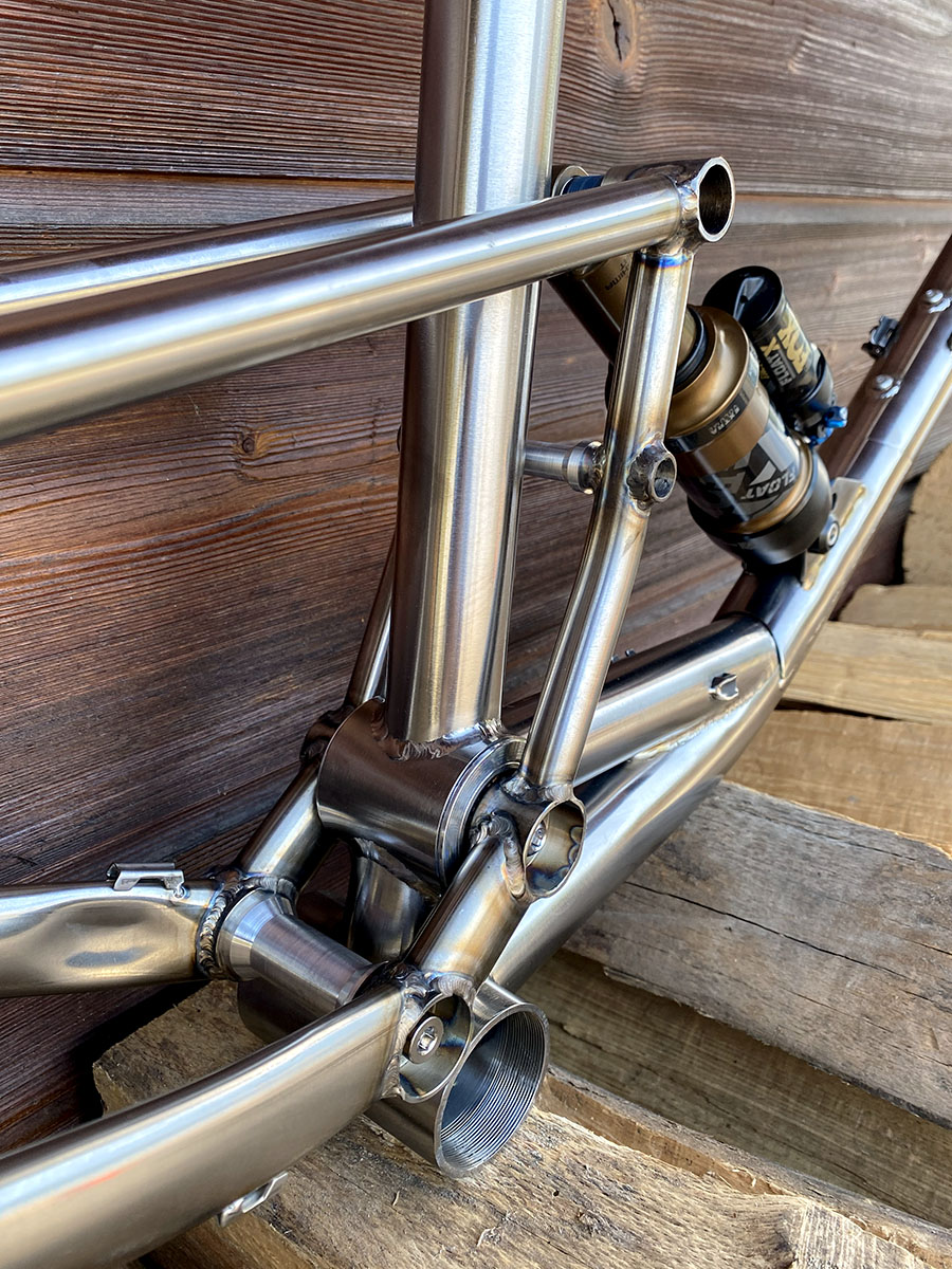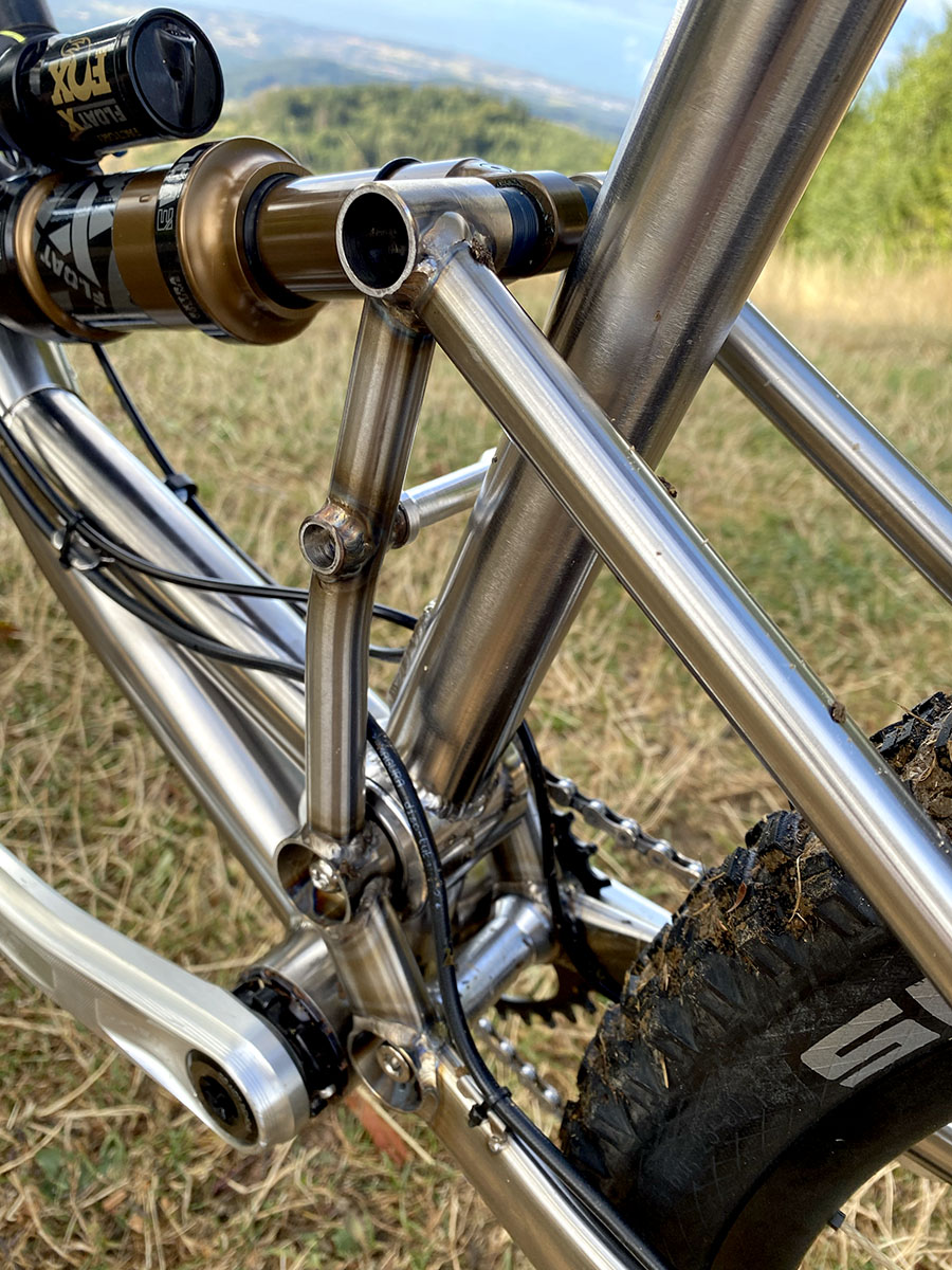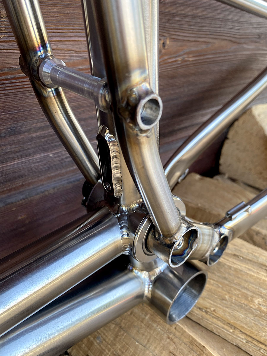 Triangle avant en titane et triangle arrière en acier inoxydable (tubes Columbus XCR + éléments en INOX 630 - 17/4)
