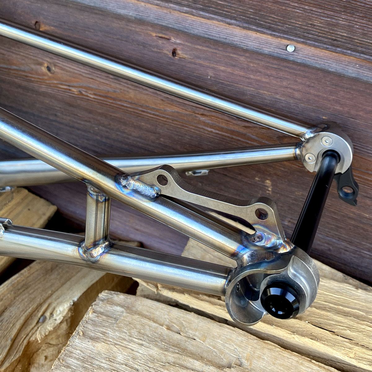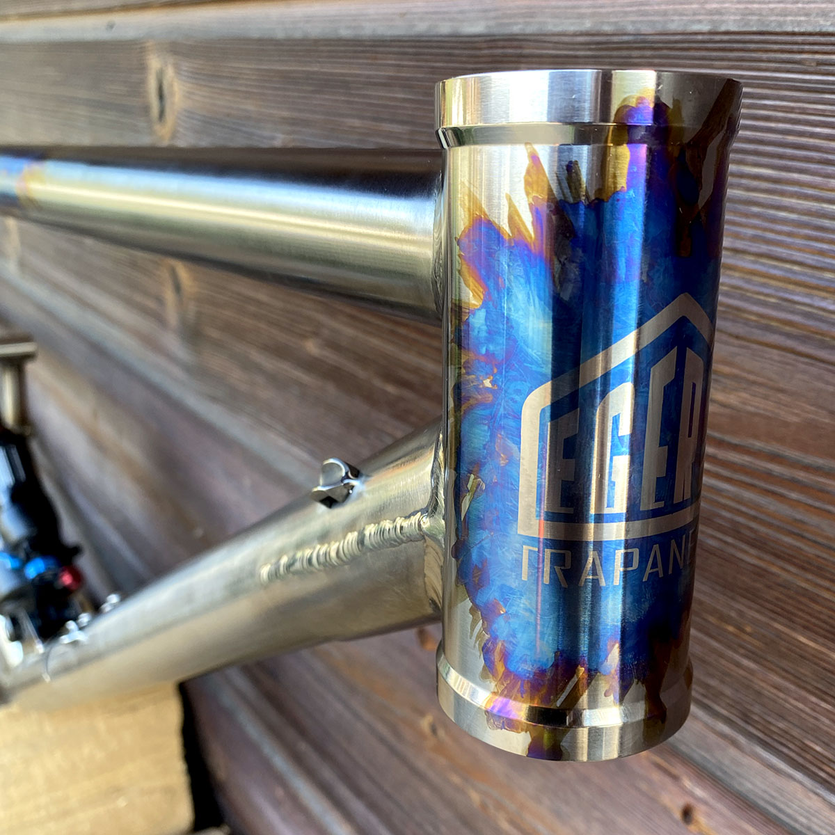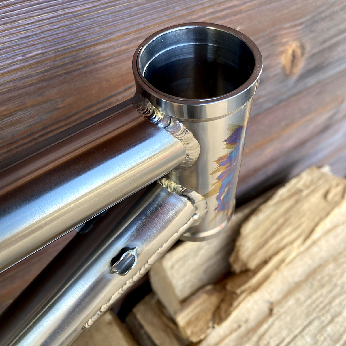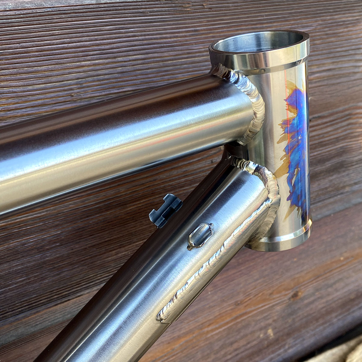 Triangle avant en titane et triangle arrière en acier inoxydable (tubes Columbus XCR + éléments en INOX 630 - 17/4)