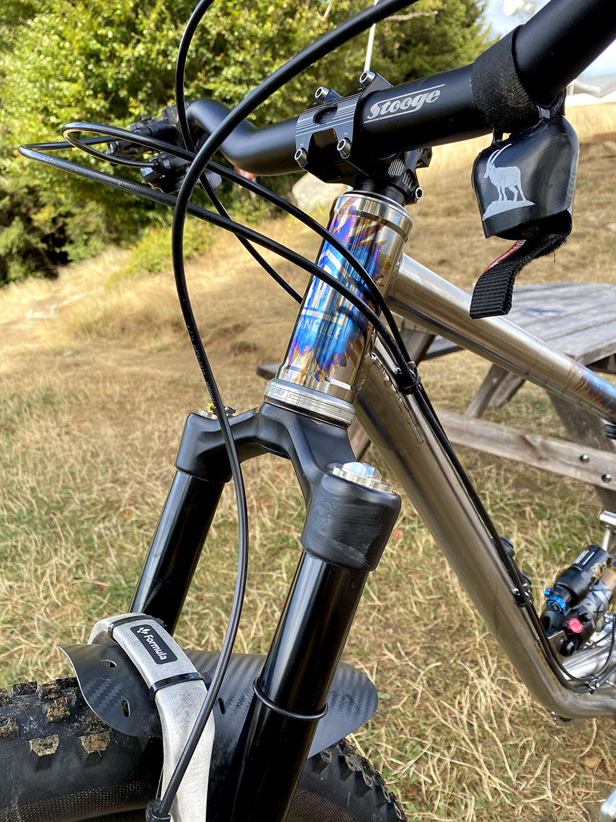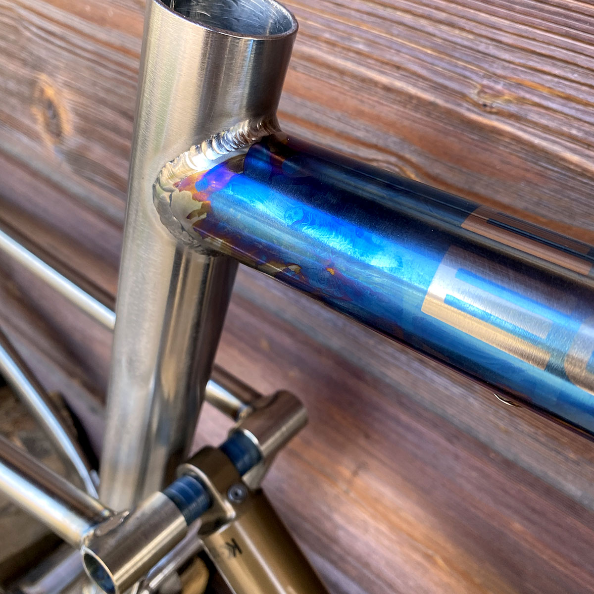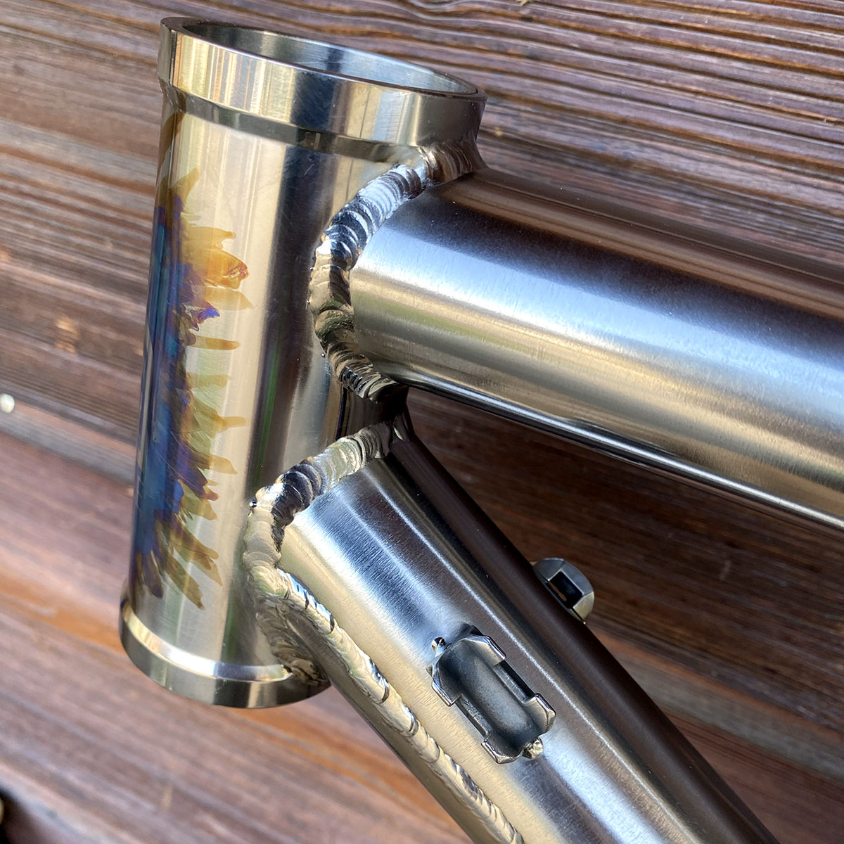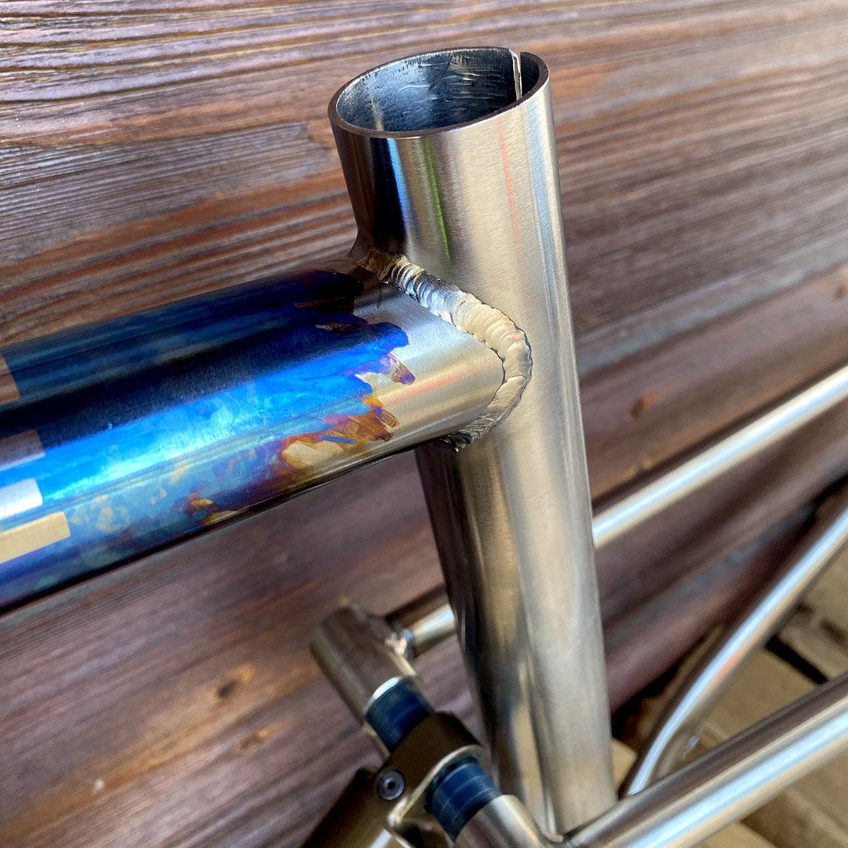 Triangle avant en titane et triangle arrière en acier inoxydable (tubes Columbus XCR + éléments en INOX 630 - 17/4)