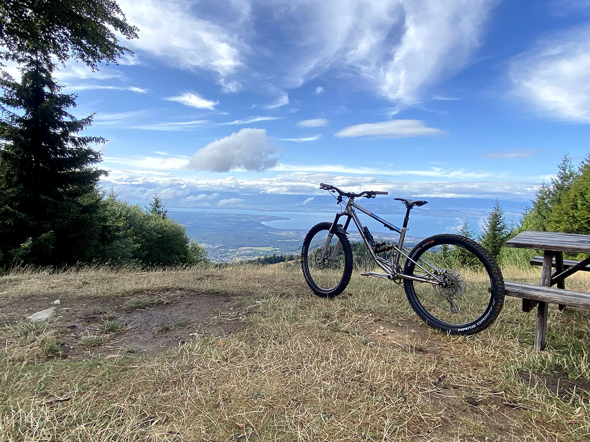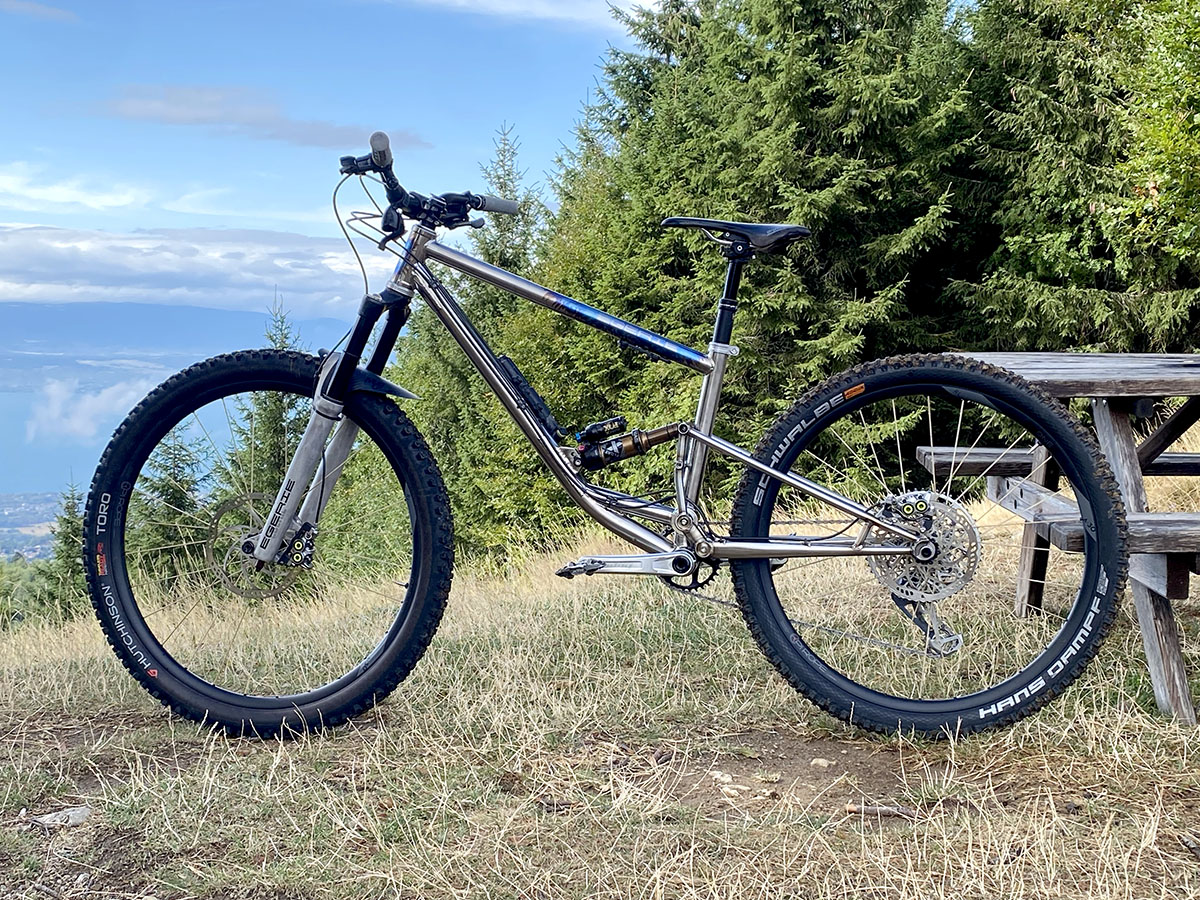 Poids du montage complet en photo : 14,35kg (pneus Hans Dampf 27.5x2.35 Super Gravity 1170gr. et Toro 29x2.35 1100gr.)