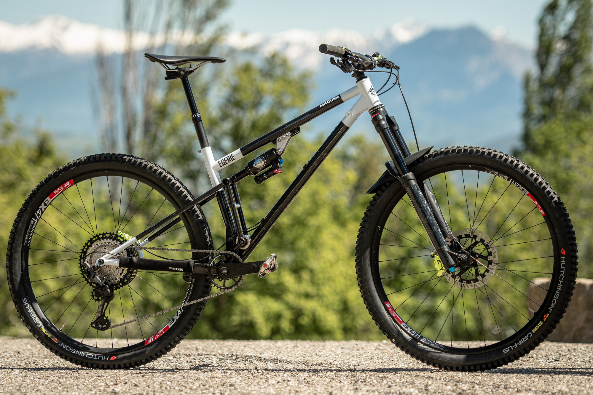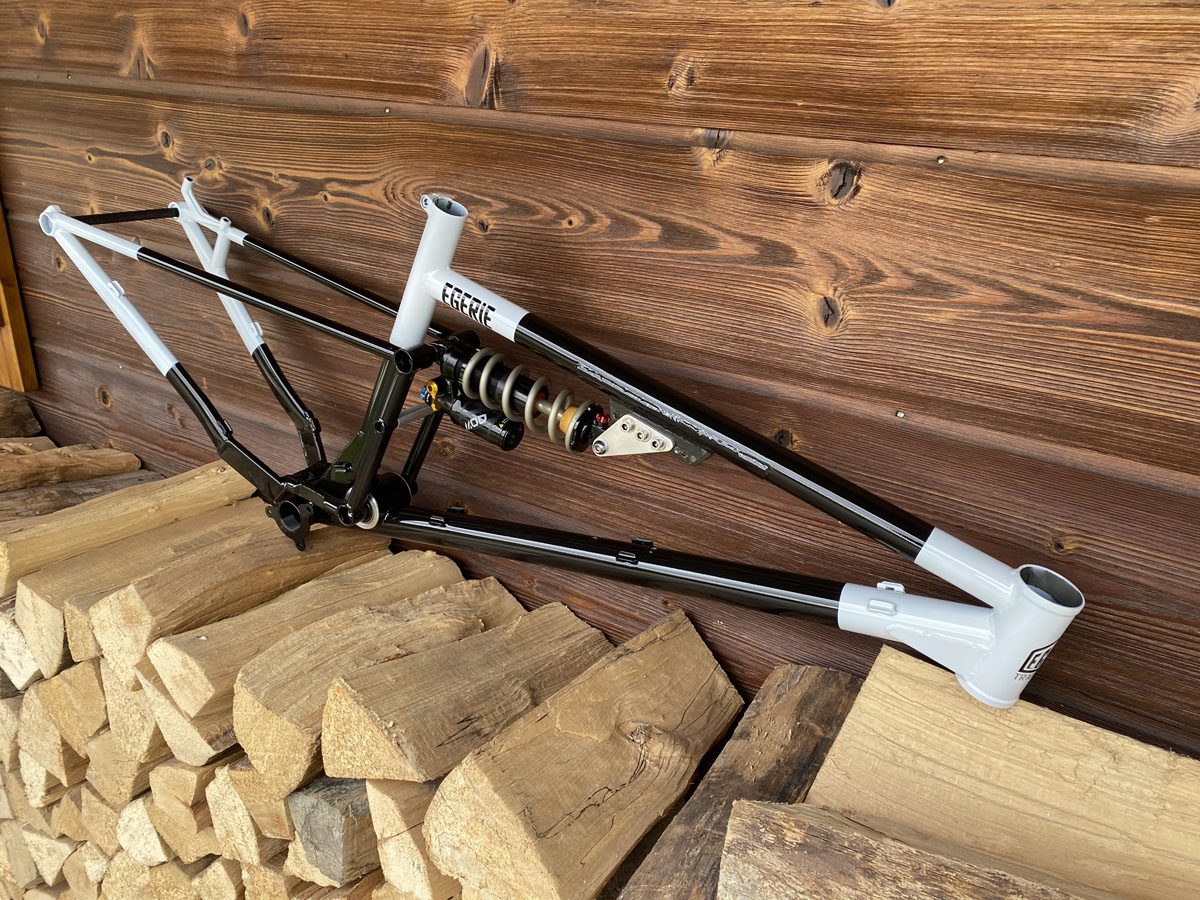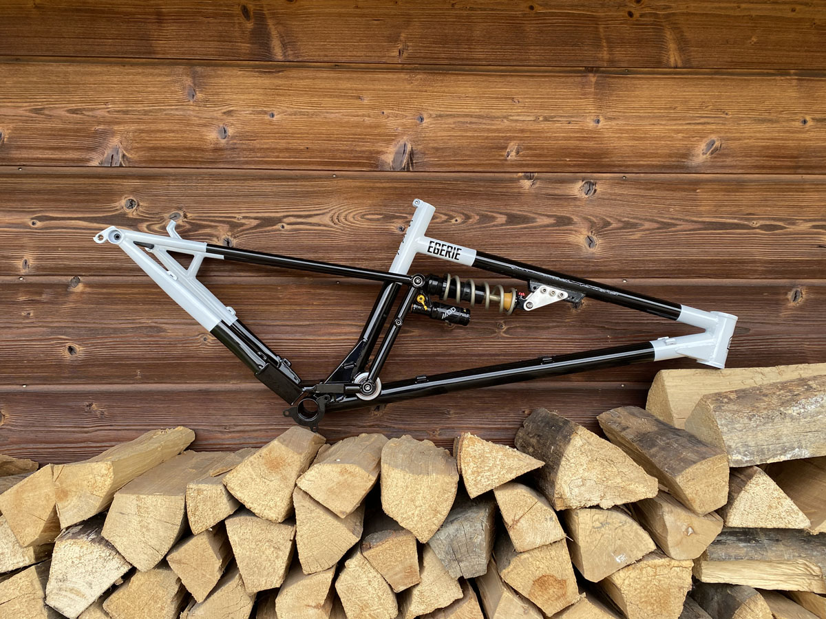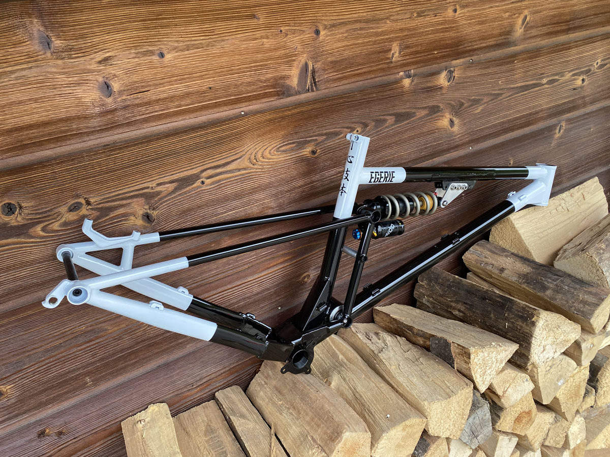 Montable avec amortisseur de 210/55mm à 230/65mm, faisant évoluer le débattement - une réglette permet de modifier l’attache de l’amortisseur pour garder la géométrie globale du vélo.